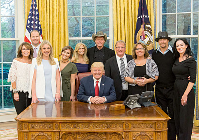 2017Kid Rock and Ted Nugent join Sarah Palin at the White House, where they get a personal tour from President Trump.