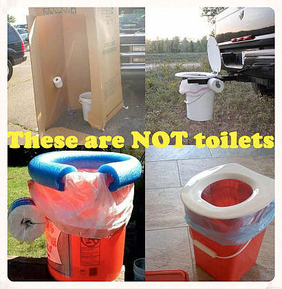 These tent toilets are easy to make with a few items from a hardware store: Put a garbage bag in a 5-gallon bucket and attach a foam roller around the ring, and you have a basic model. Why go to the trouble? Because port-a-potties are disgusting, and often too far from the action. "We know, we know... no one likes to poo in a Porta-Loo," the department posts. "But think of it as an experience to build character. Like showering at camp with a family of spiders." Image from facebook.com/MansfieldMAPD