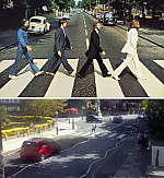 1969 The Beatles shoot the photo for their Abbey Road album cover at the crosswalk outside Abbey Road studios, where they are recording. Fans find many nested clues in the shot of the four band members walking in stride across the street, fuelling rumors that Paul McCartney is dead.More
