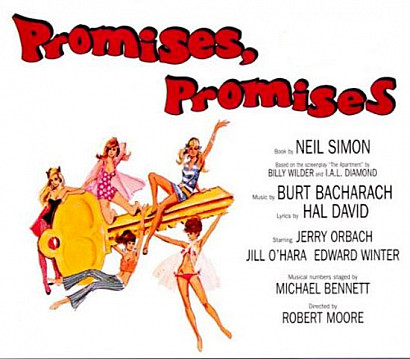 1968Promises, Promises, a musical adapted from the Billy Wilder film The Apartment, debuts at the Shubert Theatre on Broadway. The first and only Broadway production with music from Burt Bacharach and Hal David, it yields hits for Dionne Warwick and Bobbie Gentry.