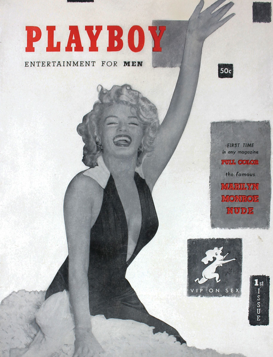 1953The first issue of Playboy magazine is published (Marilyn Monroe is on the cover). Over the next two decades, "playboy" shows up in several hit songs: "Playboy" by Marvelettes (1962) "He's Just A Playboy" by The Drifters (1964) "Playboy" by Gene & Debbe (1968) "International Playboy" by Wilson Pickett (1973)