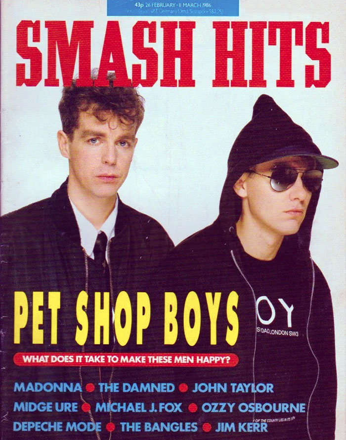 1986Thanks to their hit "West End Girls," Pet Shop Boys land the cover of Smash Hits magazine, which their frontman, Neil Tennant, used to write for.