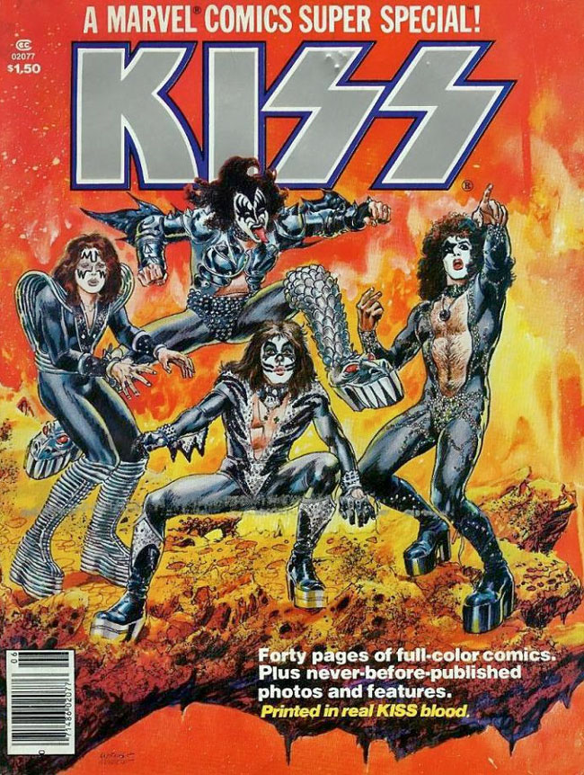 1977Marvel Comics publishes a Kiss comic book with a vial of their blood mixed into the ink.