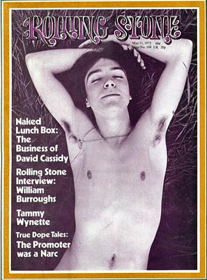 1972In an effort to shed his teenybopper image, David Cassidy appears shirtless (and pantless) on the cover of Rolling Stone.
