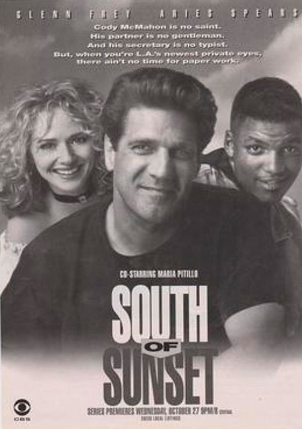 1993Glenn Frey's TV series South of Sunset makes its debut on CBS. Frey plays Cody McMahon, a security chief/bodyguard who starts a detective agency in Hollywood.