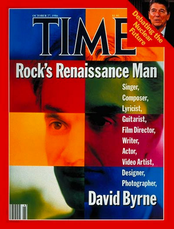1986David Byrne, who has recently directed the movie True Stories (with a soundtrack by his band, Talking Heads), makes the cover of Time magazine under the headline "Rock's Renaissance Man."